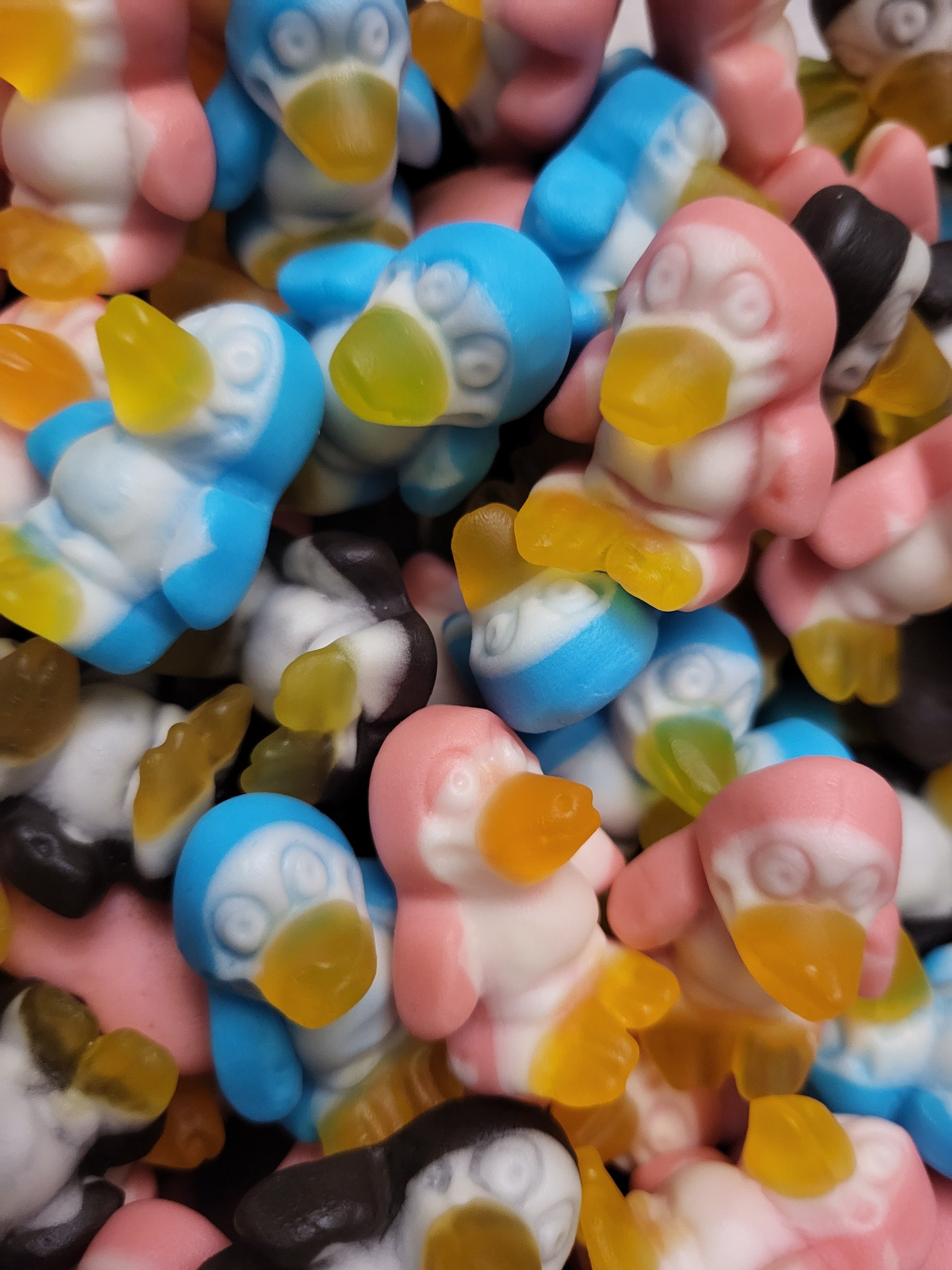 Bonbons trolli pingouins colorés aux parfums framboise, fraise et cassis